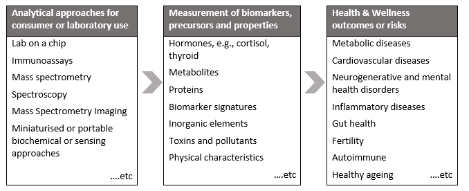 - lab-on-a-chip, immunoassay or laboratory based services with the potential for consumer use (in person or by a service)