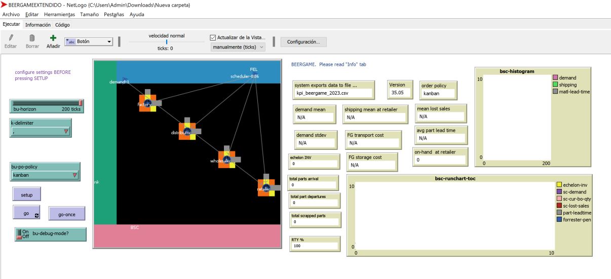En líneas generales, el simulador Beer Game Extended es una herramienta que permite experimentar con el conocido sistema de producción y distribución Beer Game. Además de las dos clásicas fuentes de incertidumbre consideradas en el Beer Game, la demanda del consumidor y la distorsión causada por los tiempos de espera (producción y envíos) fijados, para ofrecer mayor realismo y cercanía a una cadena de suministro real, el Beer Game Extended ha sido extendido con diferentes fuentes de ruido: tasa de productos defectuosos, restricciones de capacidad de producción y de capacidad de transporte, costes de producción, costes de envío y costes de almacenamiento. De esta manera, el Beer Game Extended ofrece un adecuado marco de trabajo para analizar el comportamiento de los gestores y el impacto de sus decisiones sobre la dinámica de la cadena de suministro. Para implementar este Beer Game Extended, se han utilizado técnicas de modelado y simulación híbrida. Por una parte, se ha utilizado simulación discreta para implementar una lista de eventos futuros, la cual es necesaria para avanzar el reloj de la simulación y gestionar la secuencia de eventos discretos que despliegan acciones. Por otra parte, se ha utilizado simulación basada en agentes inteligentes, ya que esta aproximación descentralizada se considera muy adecuada para analizar el complejo comportamiento de las cadenas de suministro. De esta manera, la cadena de suministro ha sido modelada como un sistema multi-agente, donde los agentes individuales interactúan en un entorno y cooperan para alcanzar objetivos colectivos. No dude en ponerse en contacto con la Universidad de Burgos para ampliar la información sobre las características técnicas de este software.