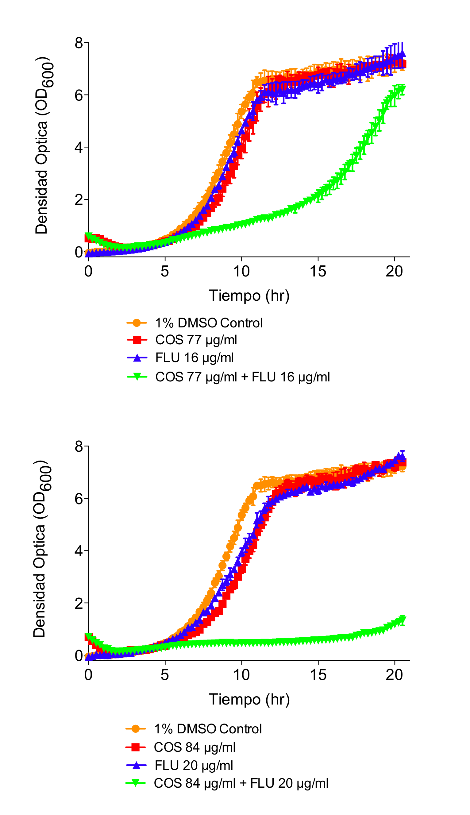 Several experiments carried out have shown the significant synergistic effect of the combination object of the present invention (chitosan or COS, and an inhibitor of ARL1 gene or a currently used antifungal such as fluconazole) in inhibiting growth of filamentous fungi and yeast.