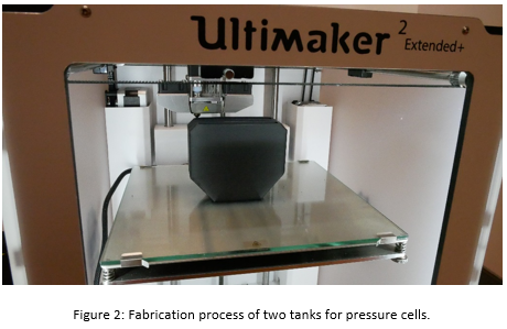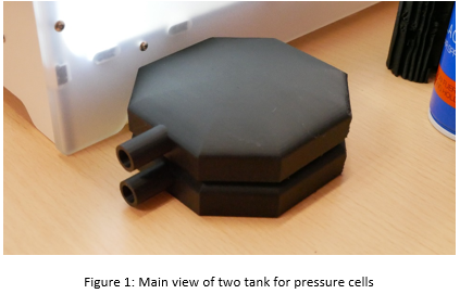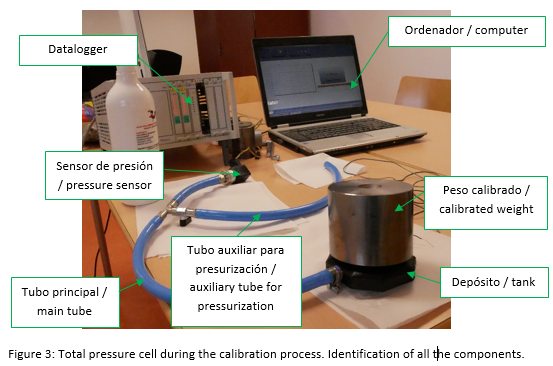 A total pressure cell (or simply pressure cell) is device with a sensor that allows to measure compression pressures inside a material in a specific direction. It is commonly used to know the compression pressures that are exerted at a point inside the ground or the final linings in tunnels. The device includes a tank. There is a direct relationship between reservoir size and pressure measurement accuracy, the smaller a total pressure cell the more accurate it will be. The traditional manufacturing process of the metal tank is laborious, which makes the final product more expensive. In addition, the demand for this type of sensors is low and consequently, its manufacturing process is poorly mechanized.