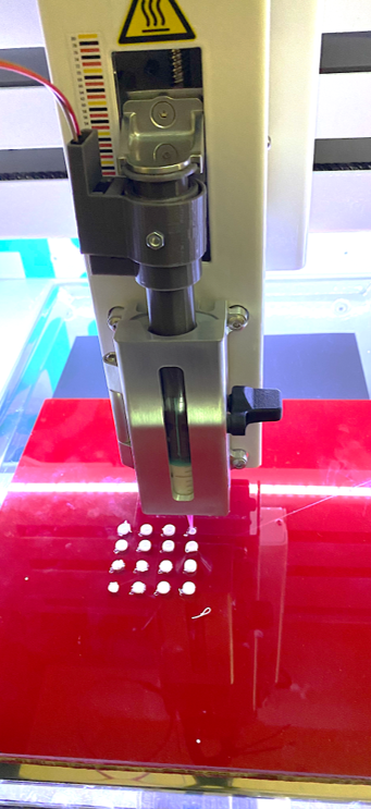 Pressure measuring device for 3D printing platforms. This device is applicable to various fields using the extrusion of semi-solid masses (tissue bioprinting, food industry, pharmaceutical, ceramics). Its usefulness lies in the fact that it allows continuous control of the pressure applied throughout the printing process, thanks to the instrumentation of the plunger. In this way, quality can be improved and errors can be detected in situ and corrective actions can be applied during the process. By using a strain gauge, the pressure value exerted by the printing platform component on the plunger and, therefore, on the mass to be extruded is obtained. This continuous control makes it possible to characterize the semi-solid mass to be printed and to establish the most suitable printing parameters on the spot, thus making it possible to fully automate the process.